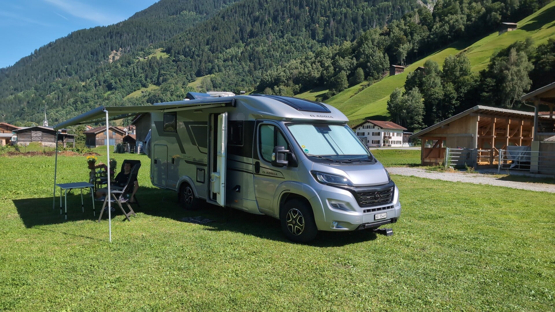 Am nächsten Tag fuhren wir weiter, aber mussten noch zuerst zum Händler fahren, da es ein kleines Problem mit dem Dachfenster gab. Von Schachen (LU) fuhren wir dann nach Andermatt und über den Obberalp nach Surrein zum Landcamp Luna-o-Sol. Dalila hat uns empfangen, alles gezeigt und den Platz wo wir uns hinstellen konnten. Am Abend kam noch Emauel und wir hatten eine sehr schöne Unterhaltung, wo er noch Tipps gab, was wir machen konnten.