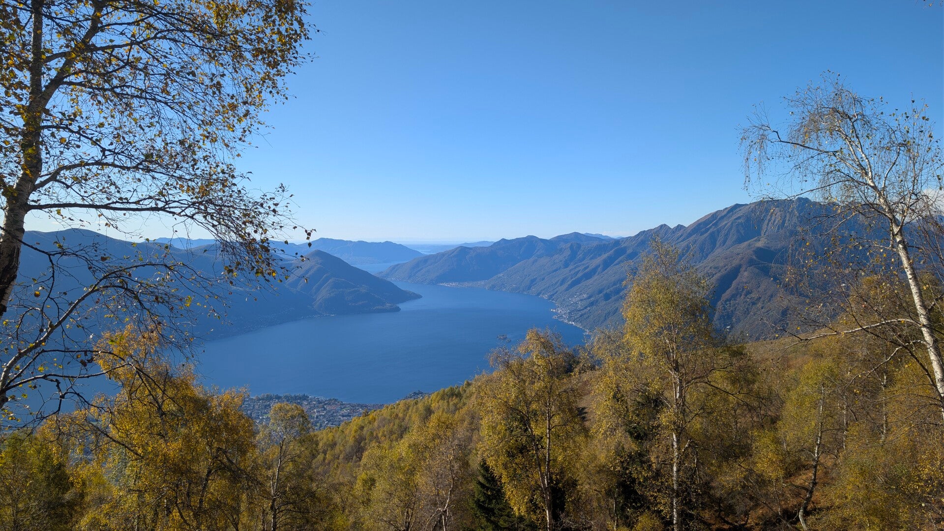 Der Weg führte zum Sessellift und von dort in den Wald. Vorbei an der Alpe Carcada und weiter nach Cimetta. Oben hat man ein wunderbares Panorama. Der Rückweg führte durch den Wald und durch die Blätter auf dem Boden sah man den Wanderweg nicht immer ganz genau. In Cardada nahmen wir wieder die Seilbahn nach unten.